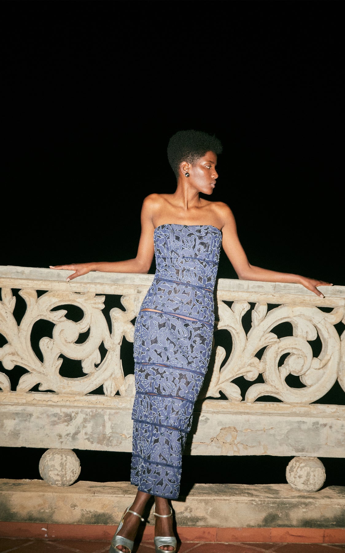Este vestido midi tipo denim presenta un ajuste perfecto para destacar escotes y cortes precisos para un estilo moderno y sofisticado. Crea un look elegante y exclusivo.