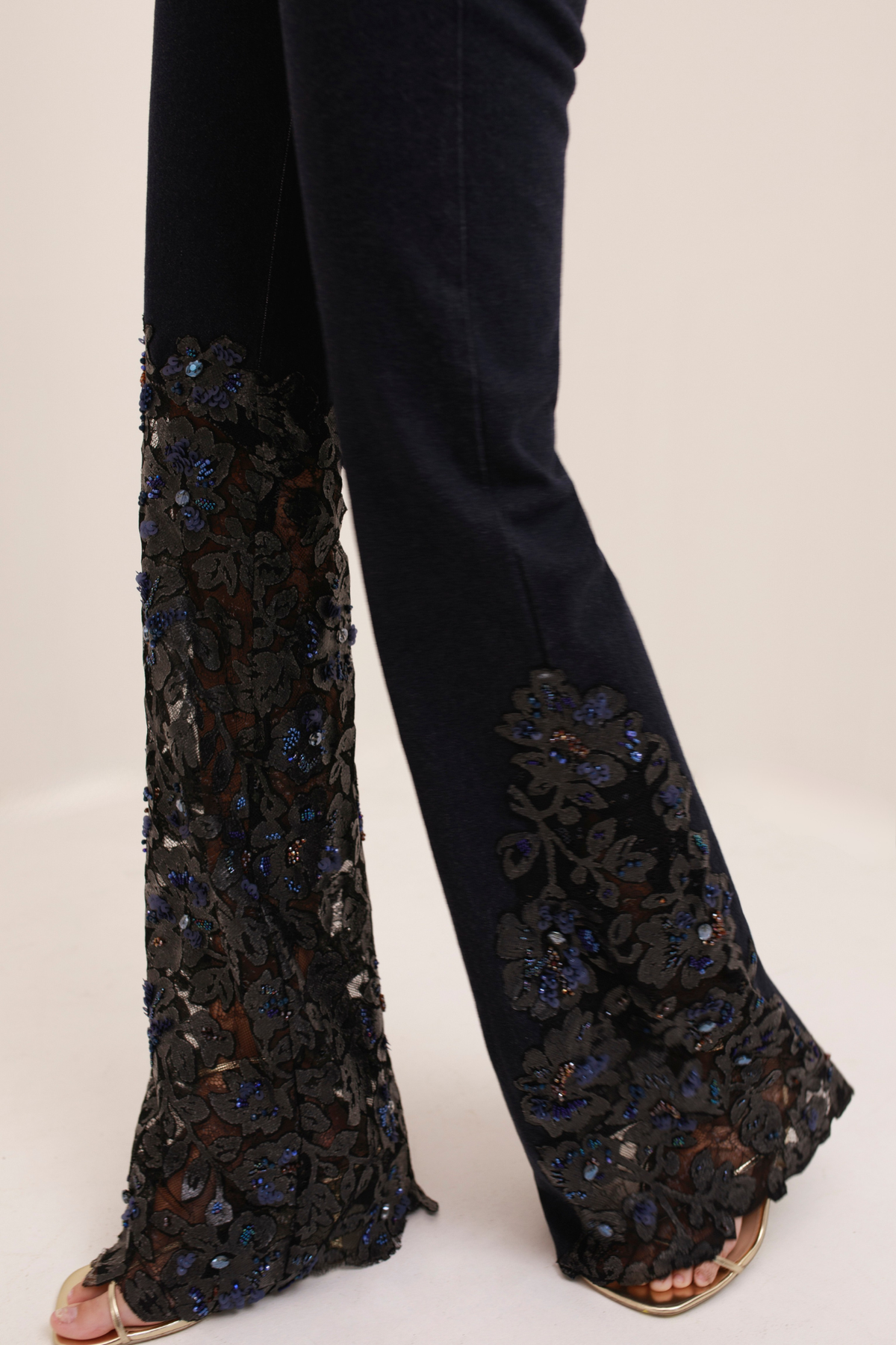 Our Gardenia Pants where navy cotton meets floral lace appliqués for a fresh, feminine take on denim. A statement piece that blends structure and delicacy with ease.