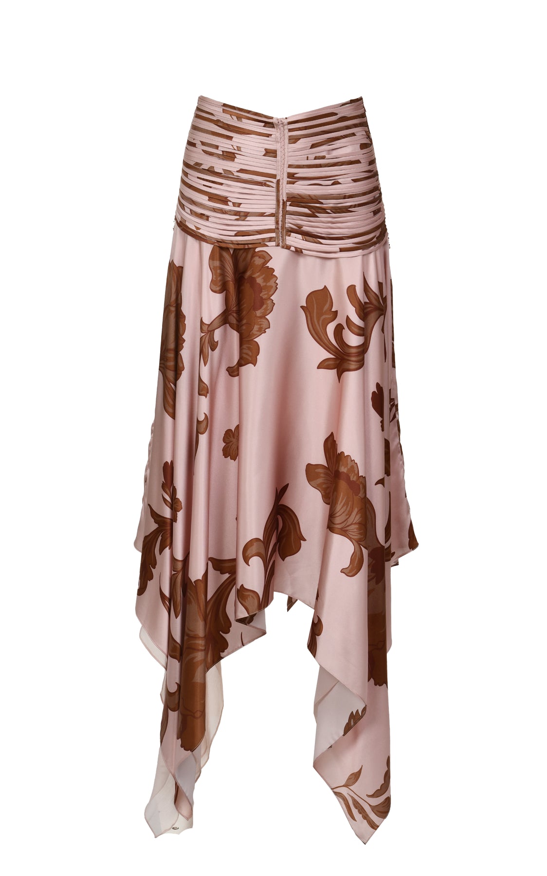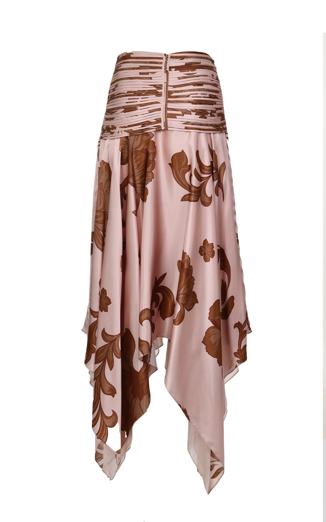 Expertly crafted in our atelier, the Erden Pink Skirt features a floral print and a luxurious 100% silk fabric. The waistband showcases our iconic "Pata de cabra" technique, adding a unique touch to this elegant piece.